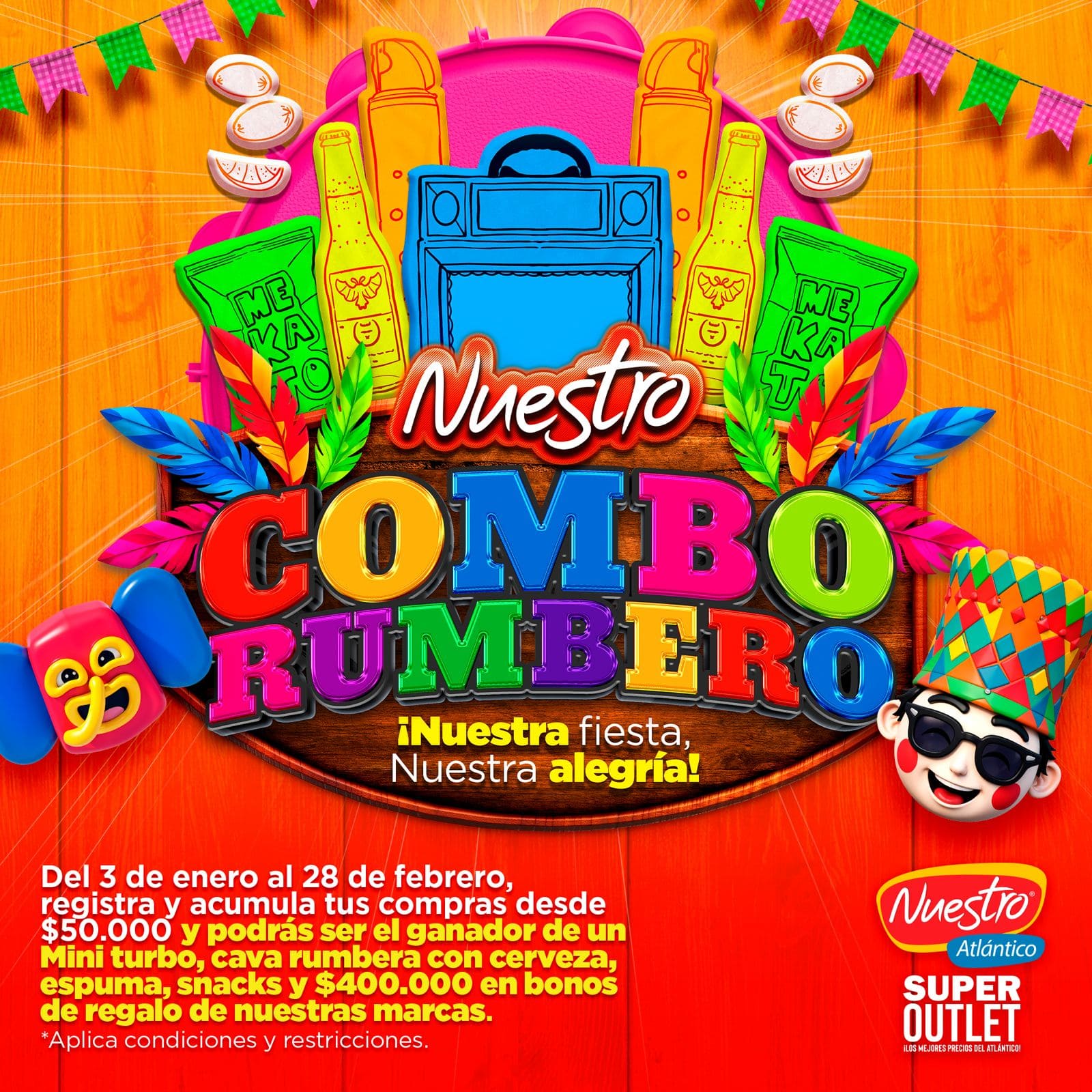 Registra y acumula tus compras desde $50.000 del 3 de enero al 28 de febrero y podrás ser el ganador de un Mini Turbo, cava rumbera con cerveza,…